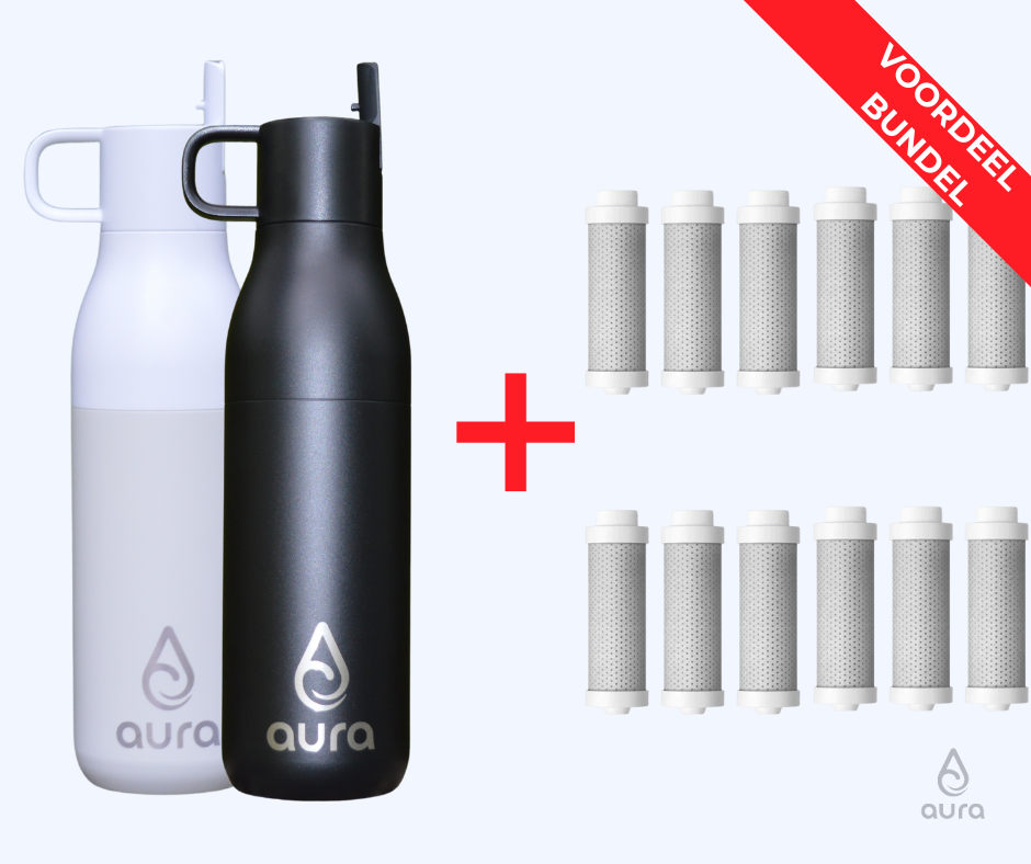 Couple & Stasher Pack: 2 Aura Water Bottles + 4x 3-pack filters