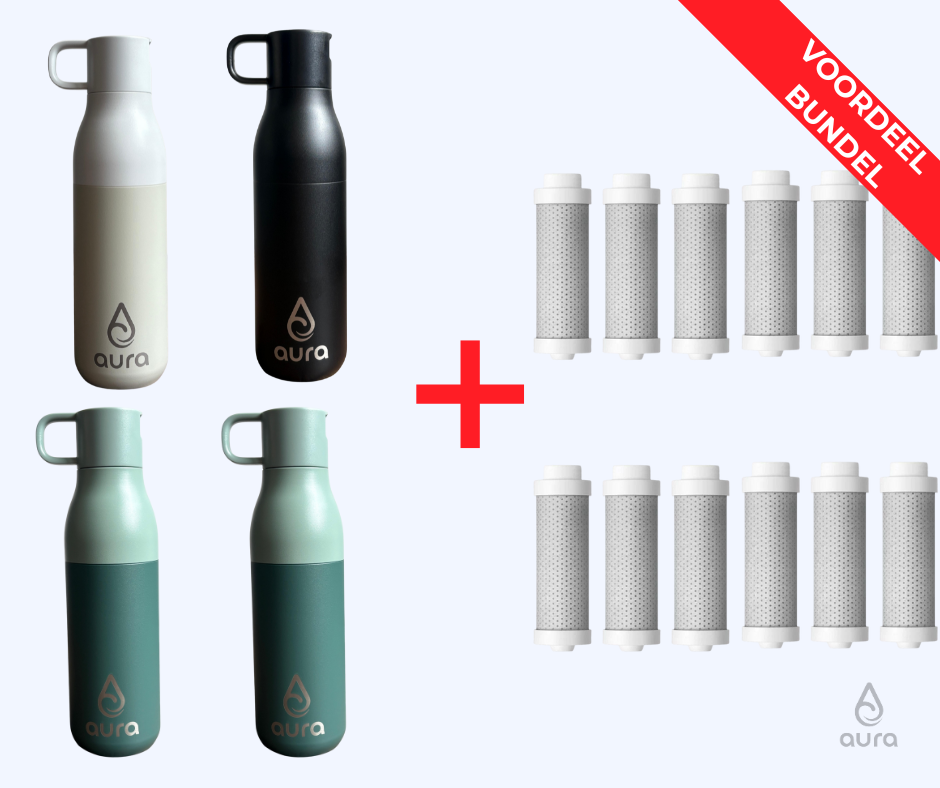 💧 4 flessen + 12 filters = 1800 liter gefilterd water